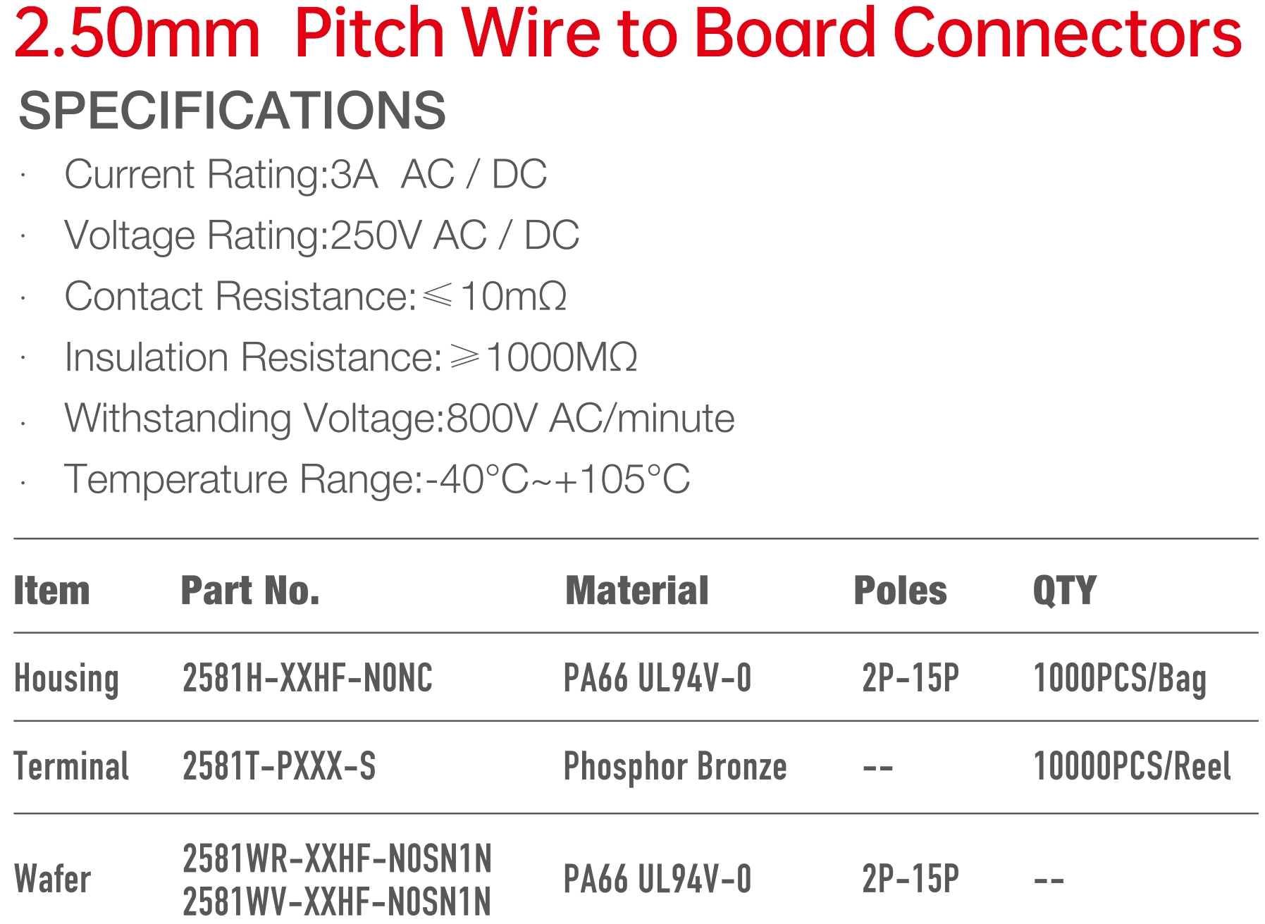 2581 Series 2.50mm Pitch (.098") 車用連接器