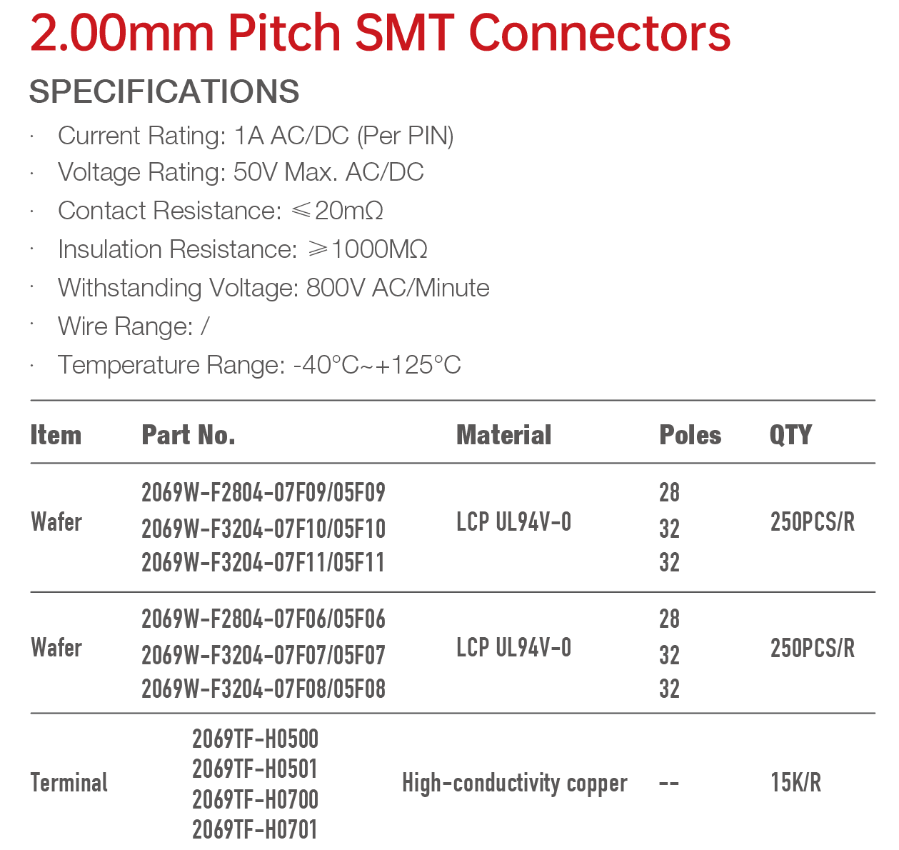 2069 Series 2.00mm Pitch(.079)SMT連接器