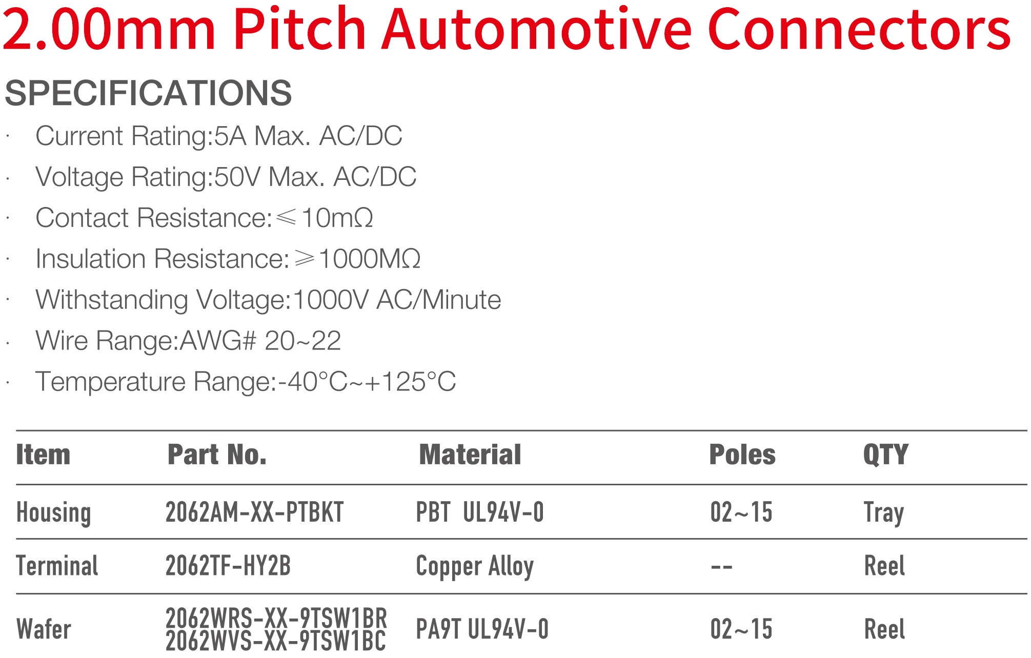 2062 Series 2.00mm Pitch (.079") 車用連接器