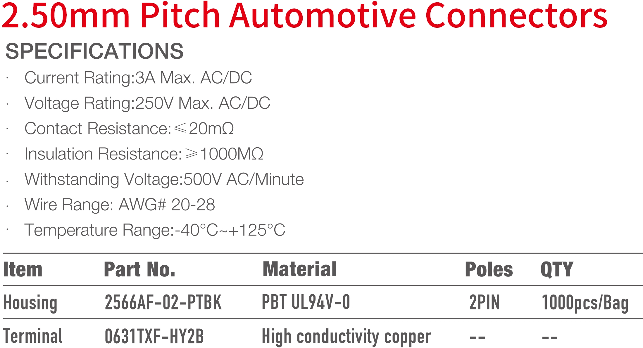 2566 Series 2.50mm Pitch (.098") 車用連接器