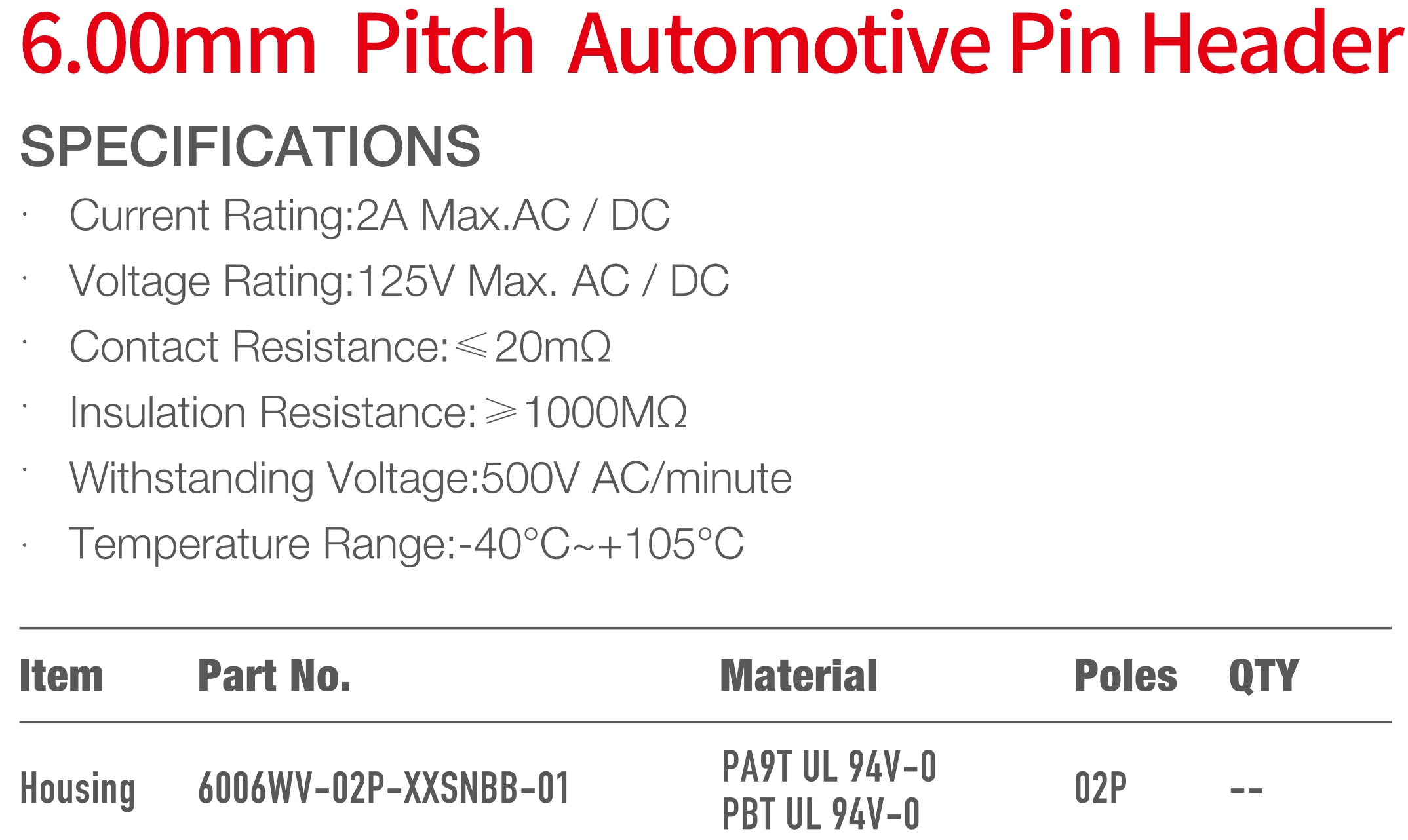 6006 Series 6.00mm Pitch (.236") 車用排針連接器