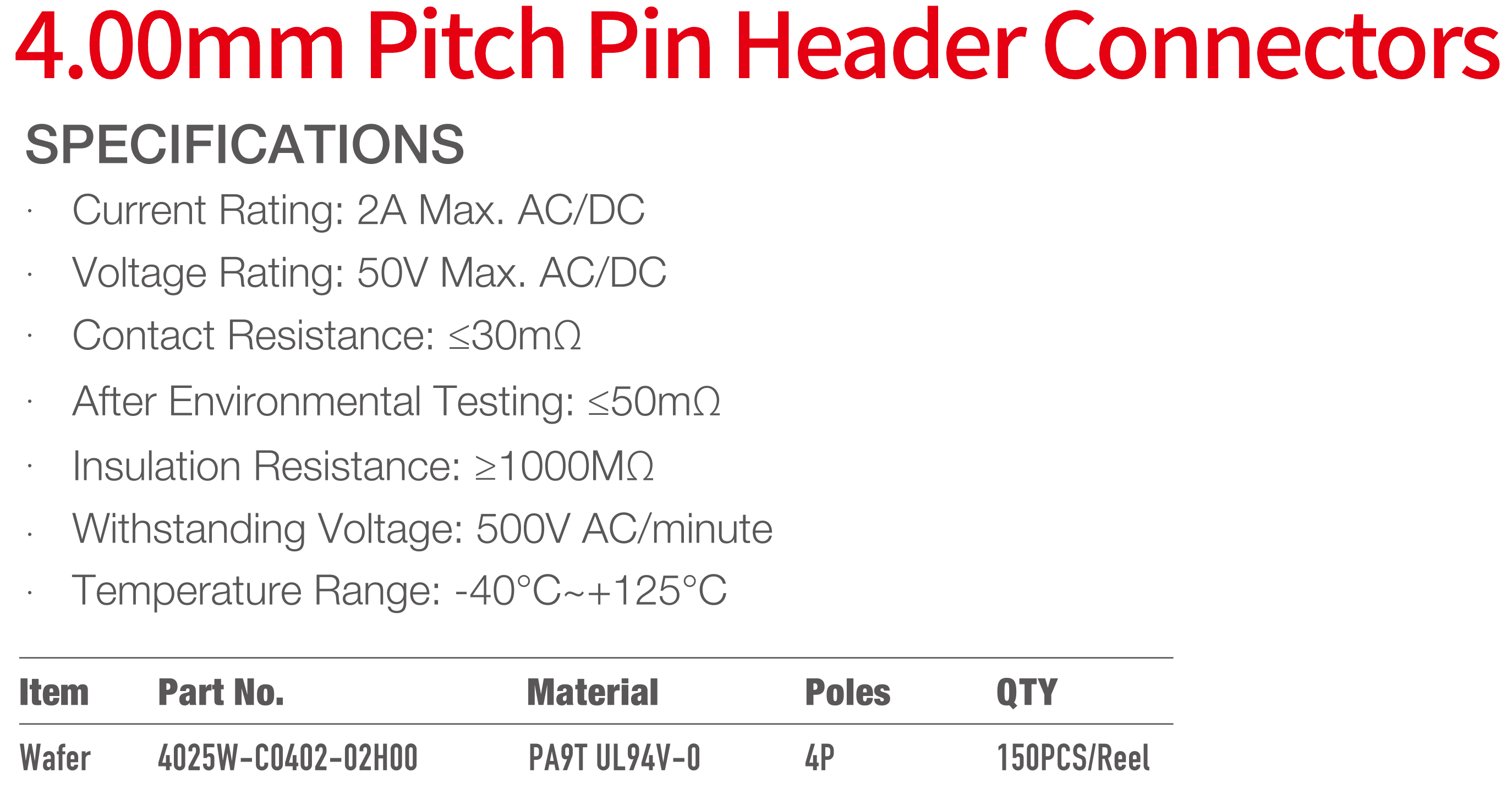 4025 Series 4.00mm Pitch (.157")排針連接器