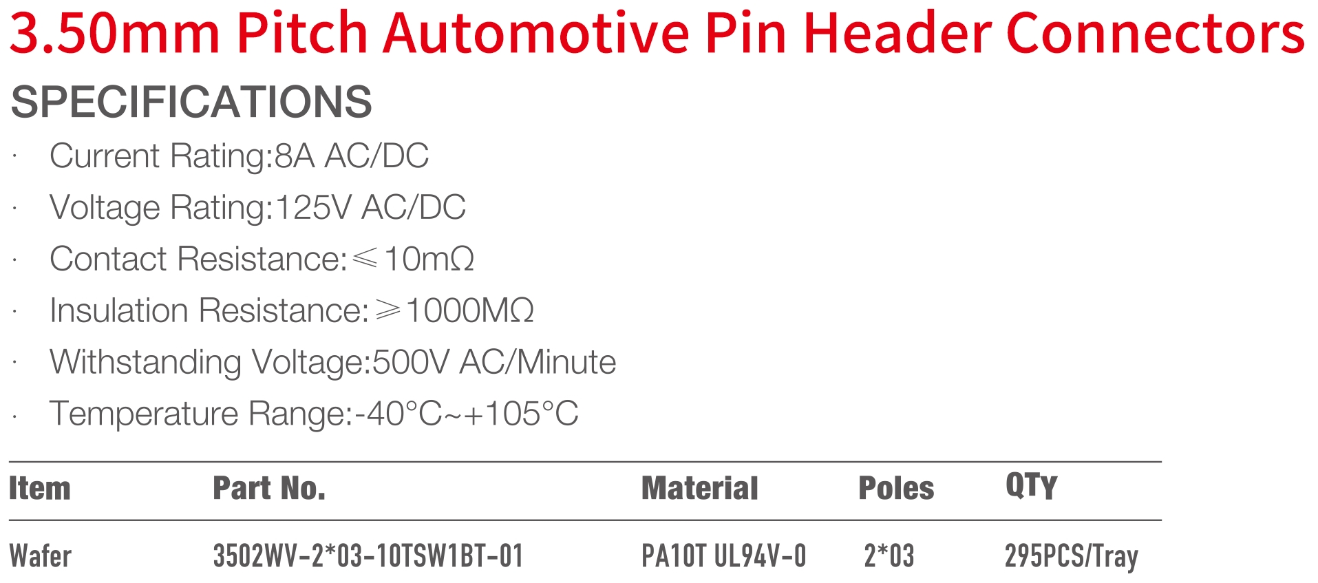 3502 Series 3.50mm Pitch (.138") 車用排針連接器
