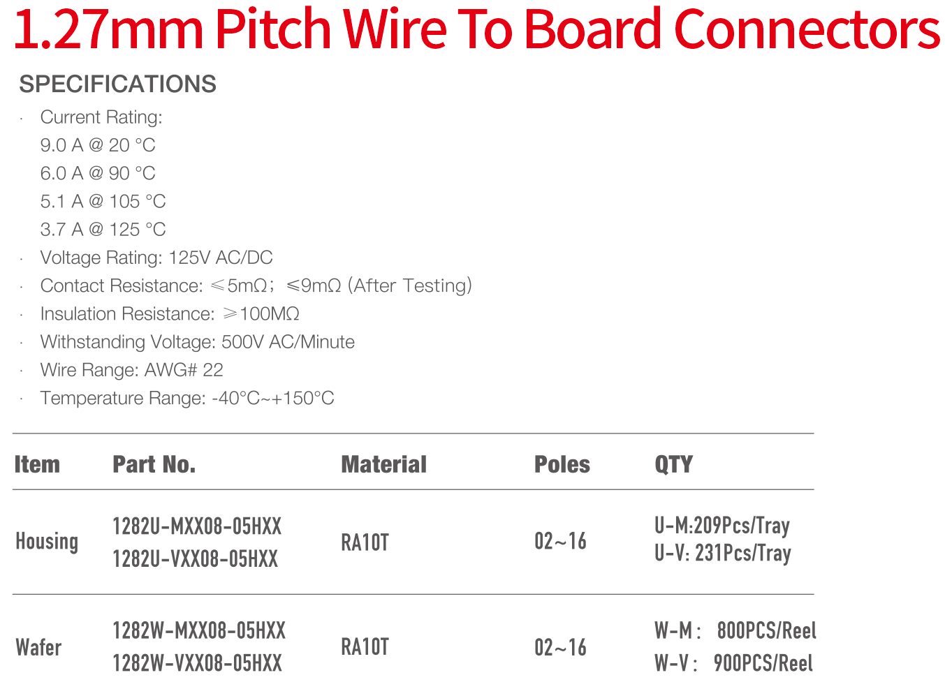 1282 Series 1.27mm Pitch (.050") 線對板連接器