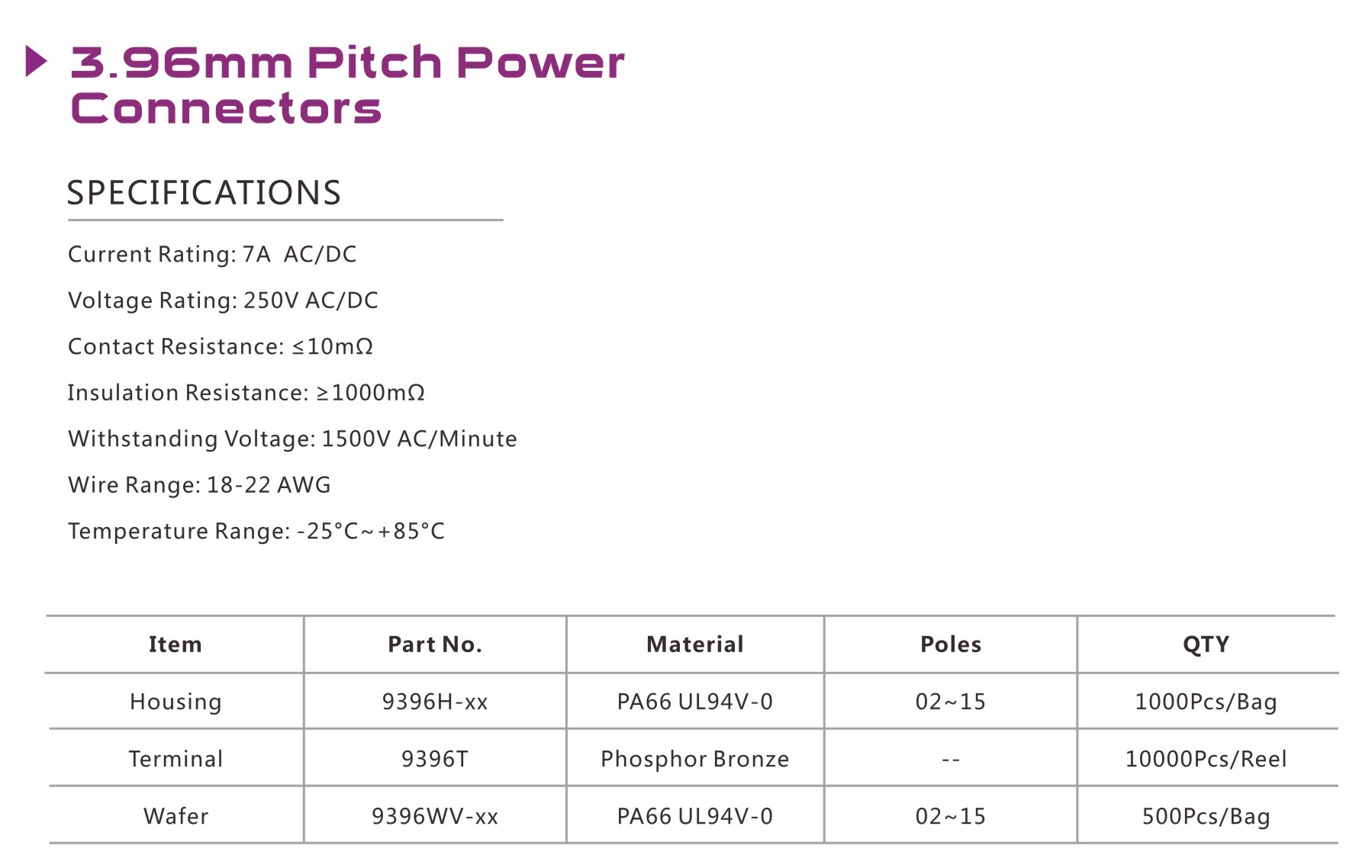 9396 Series 3.96mm Pitch (.156") 電源連接器