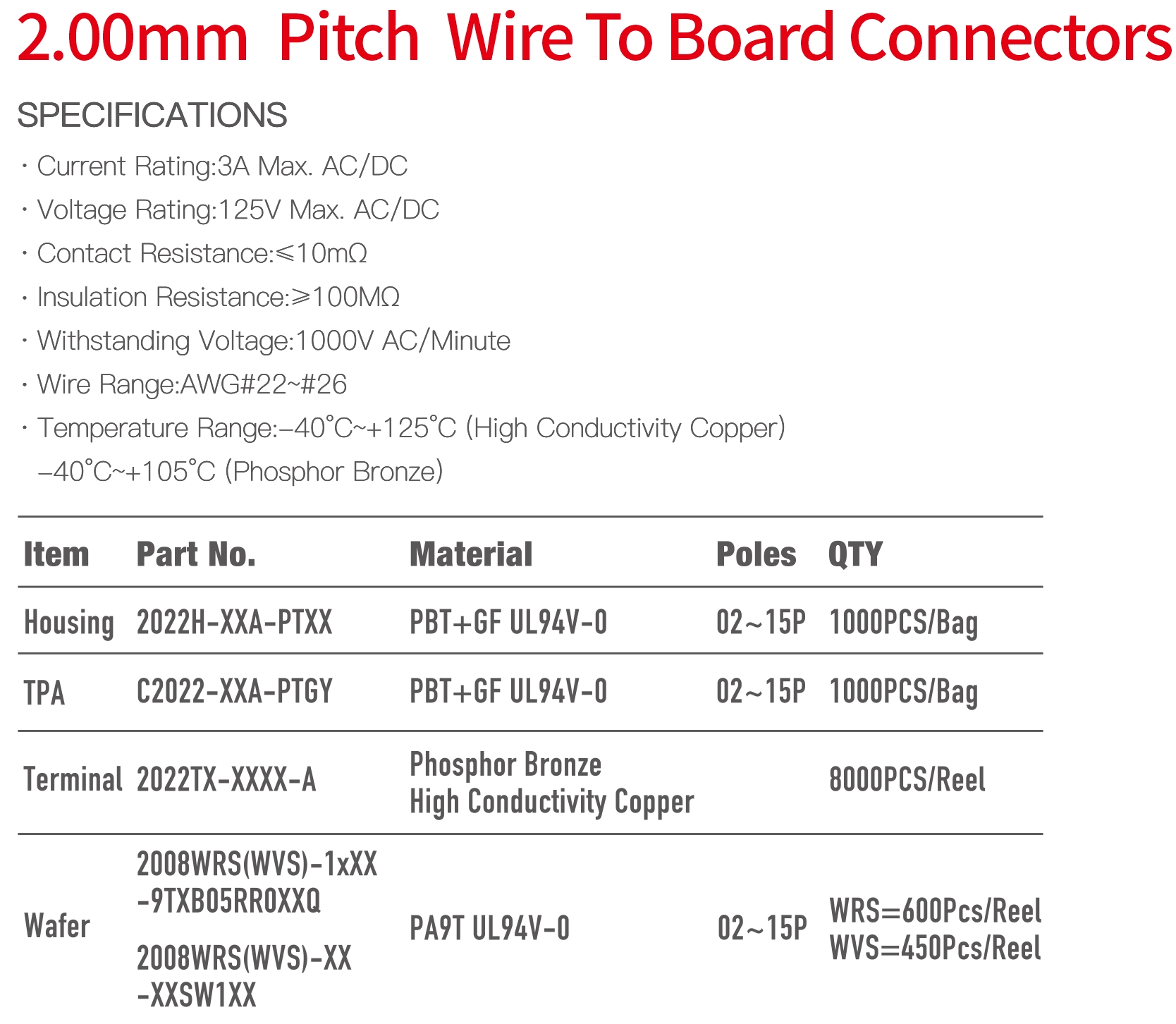 2022A Series 2.00mm Pitch (.079") 線對板連接器
