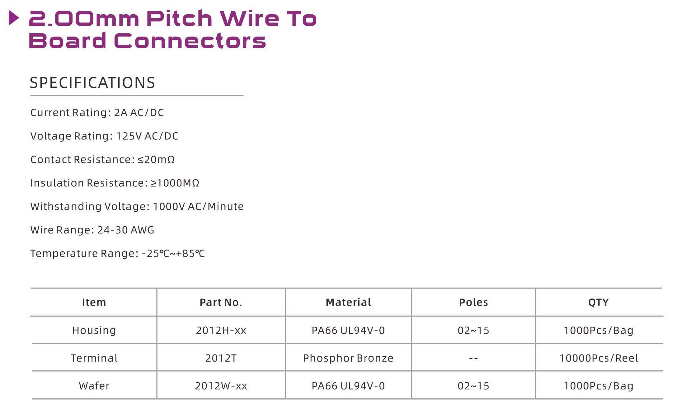 2012 Series 2.00mm Pitch (.079) Wire to Board Connectors