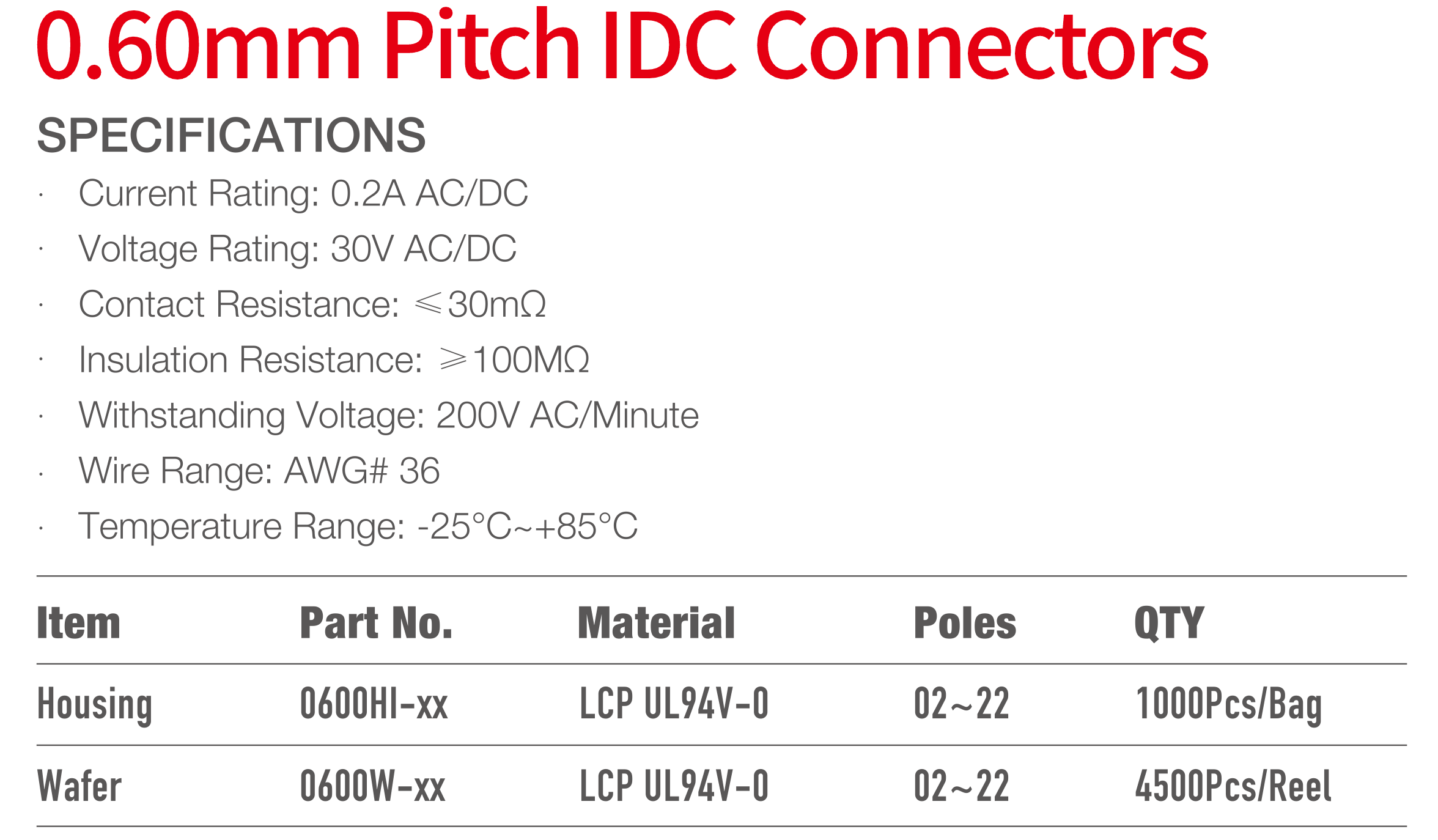 0600 Series 0.60mm Pitch (.124") 刺破連接器