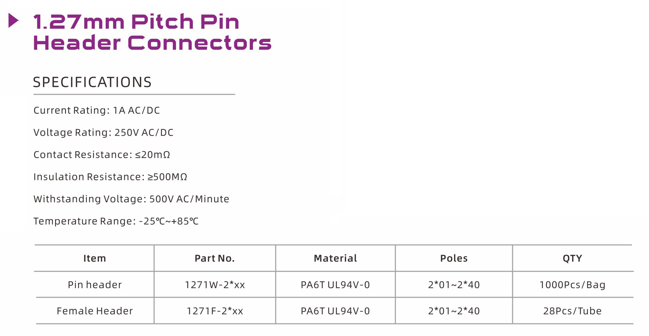 1271 Series 1.27mm Pitch (.050") 排針排母牛角連接器