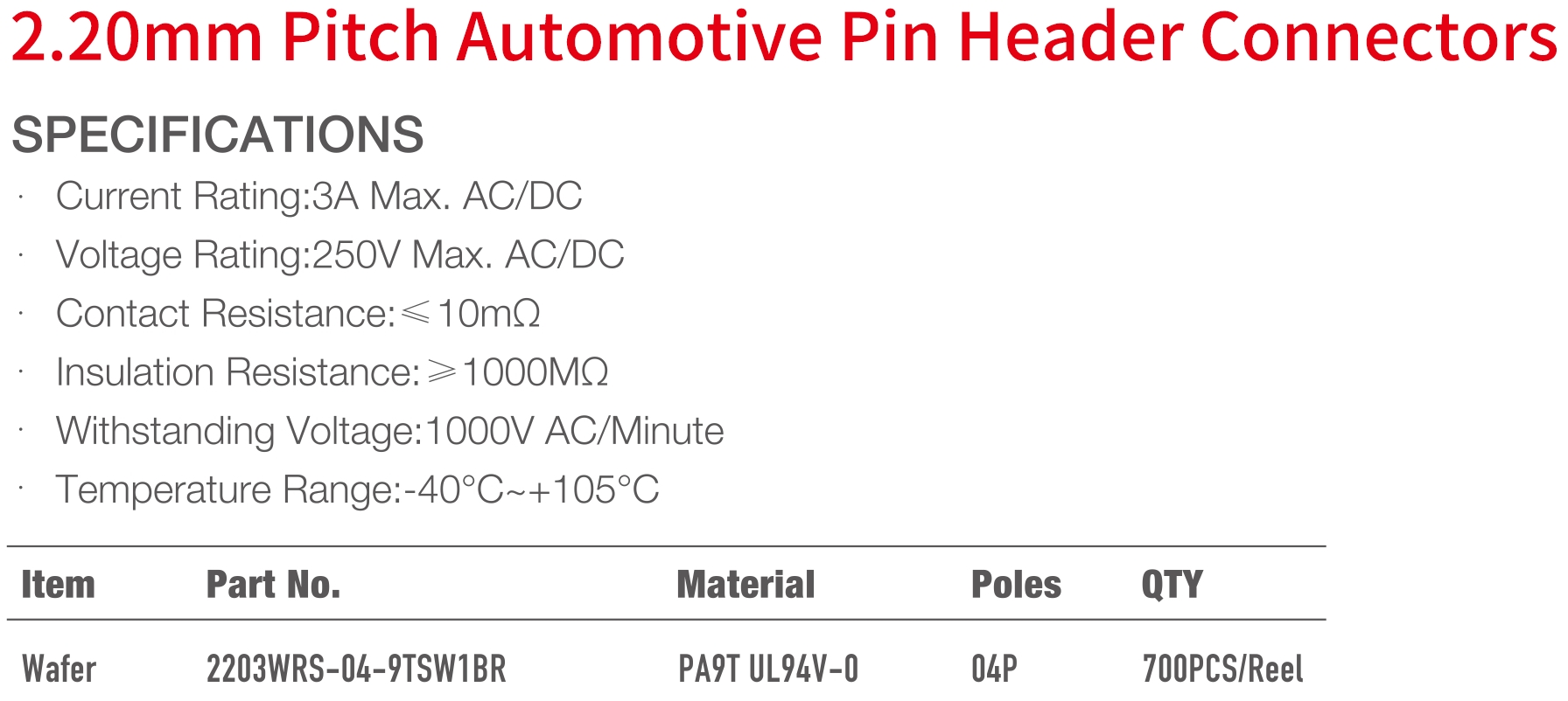2203 Series 2.20mm Pitch (.087") 車用排針連接器