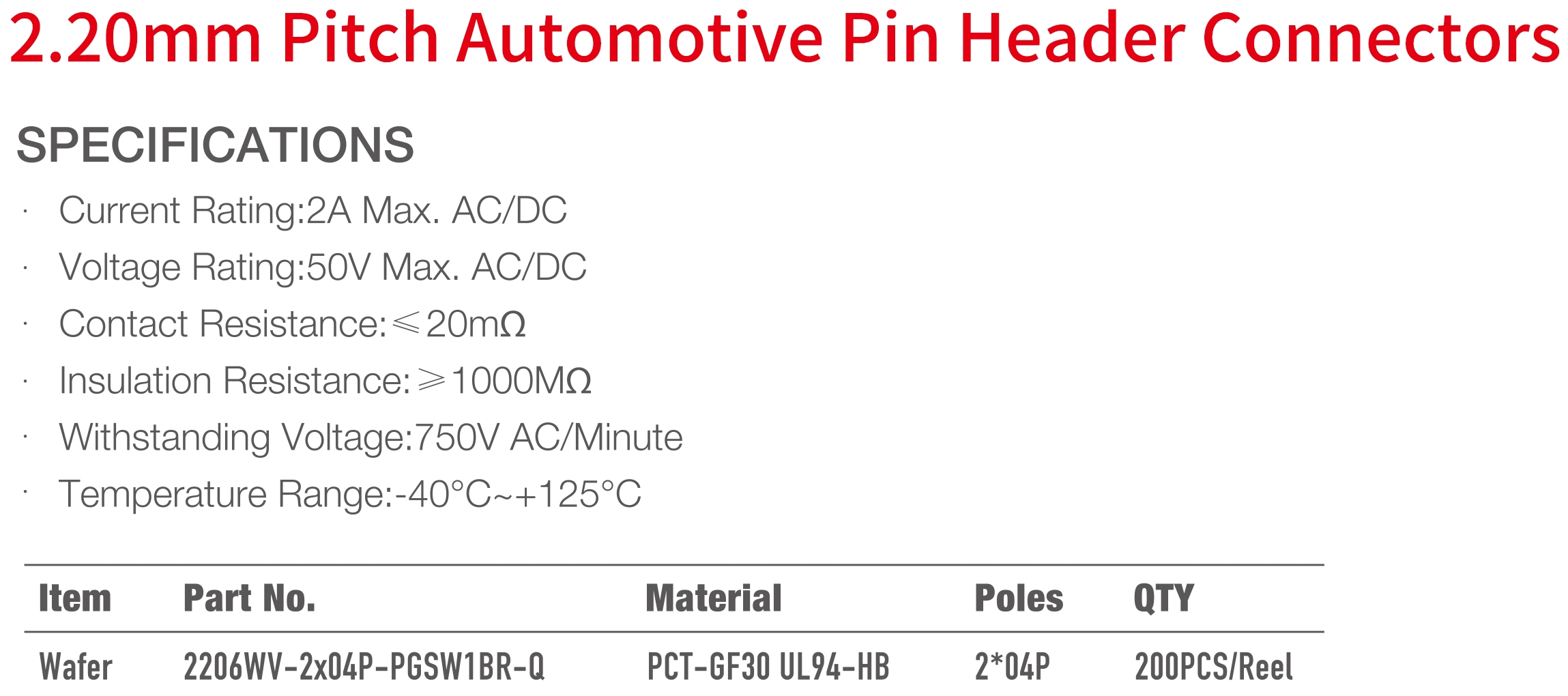 2206 Series 2.20mm Pitch (.087") 車用排針連接器