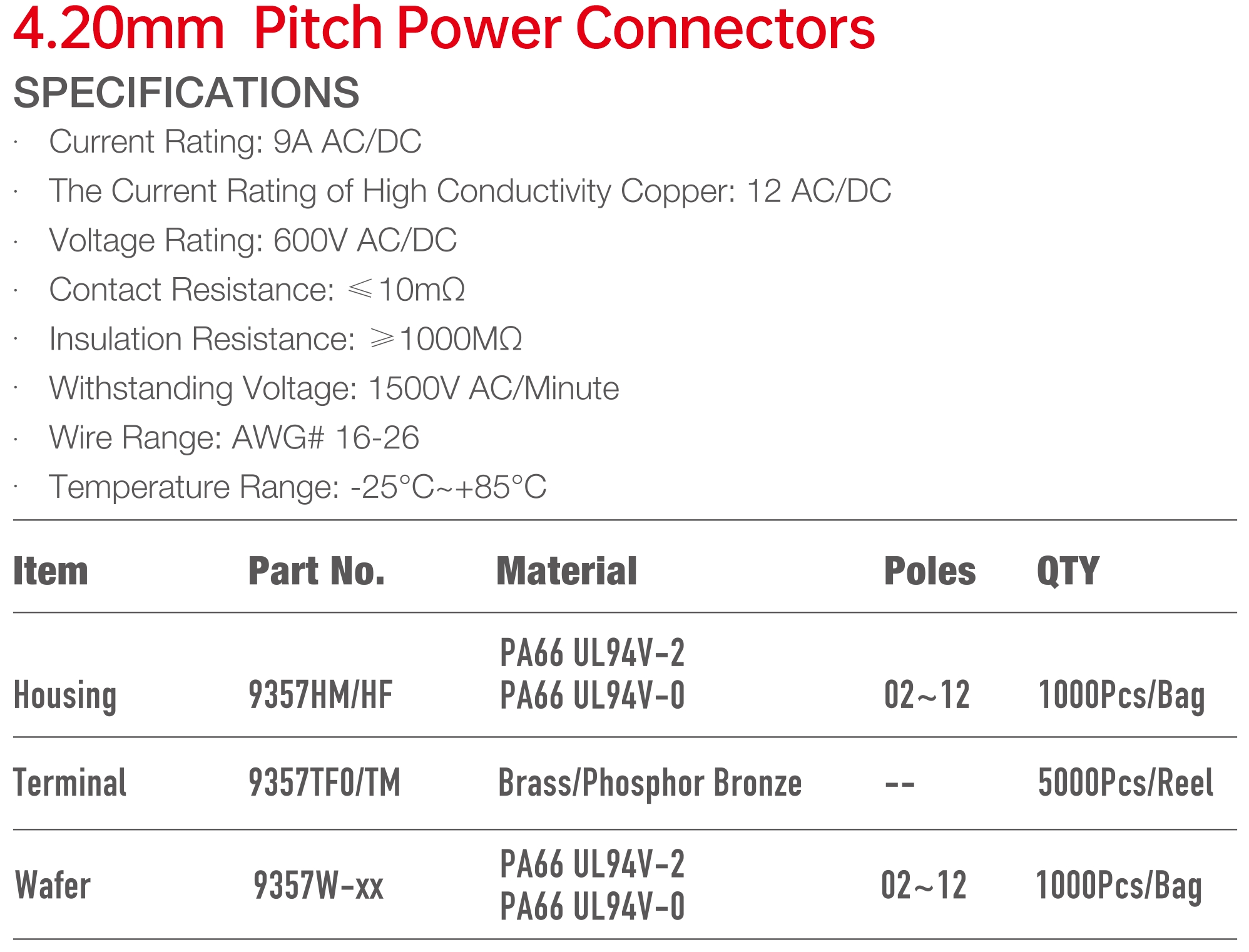9357 Single Row Series 4.20mm Pitch (.165") 線對線連接器