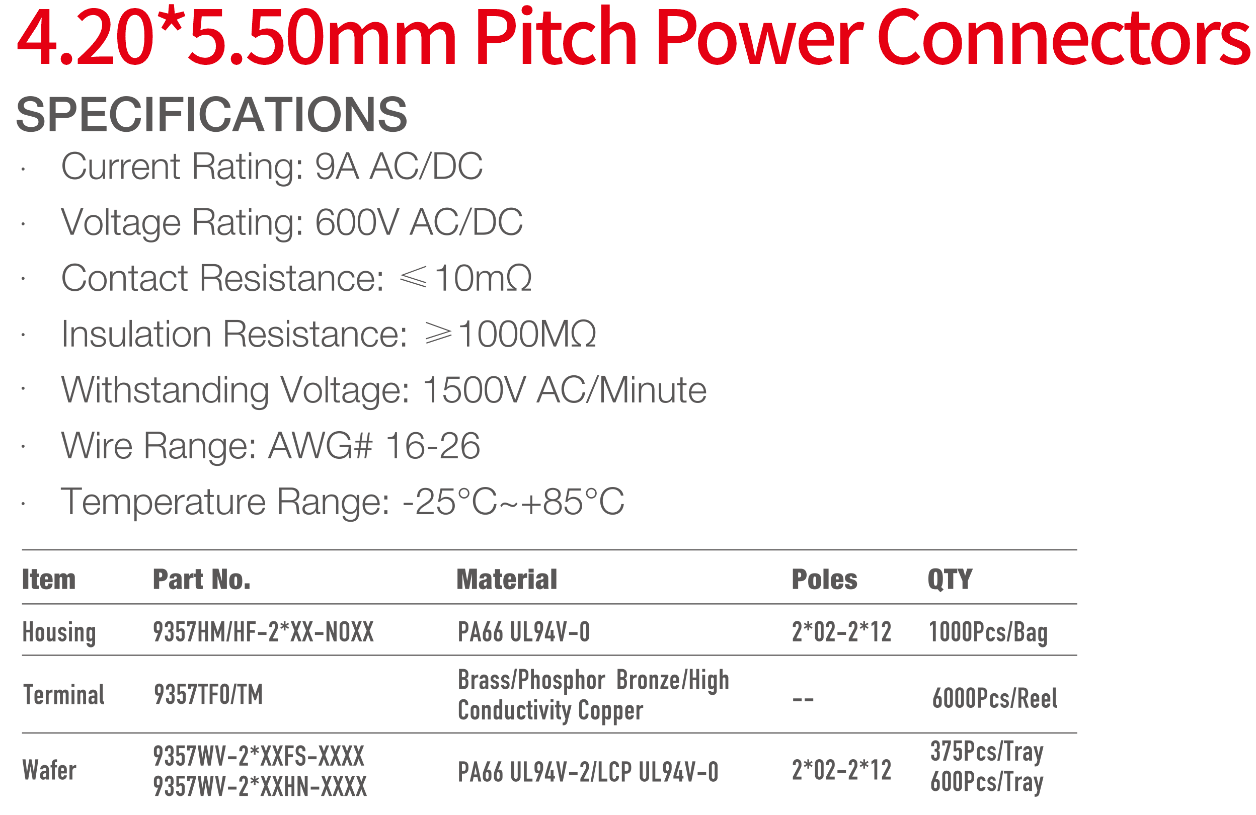 9357 Series 4.20mm Pitch (.165") 電源連接器