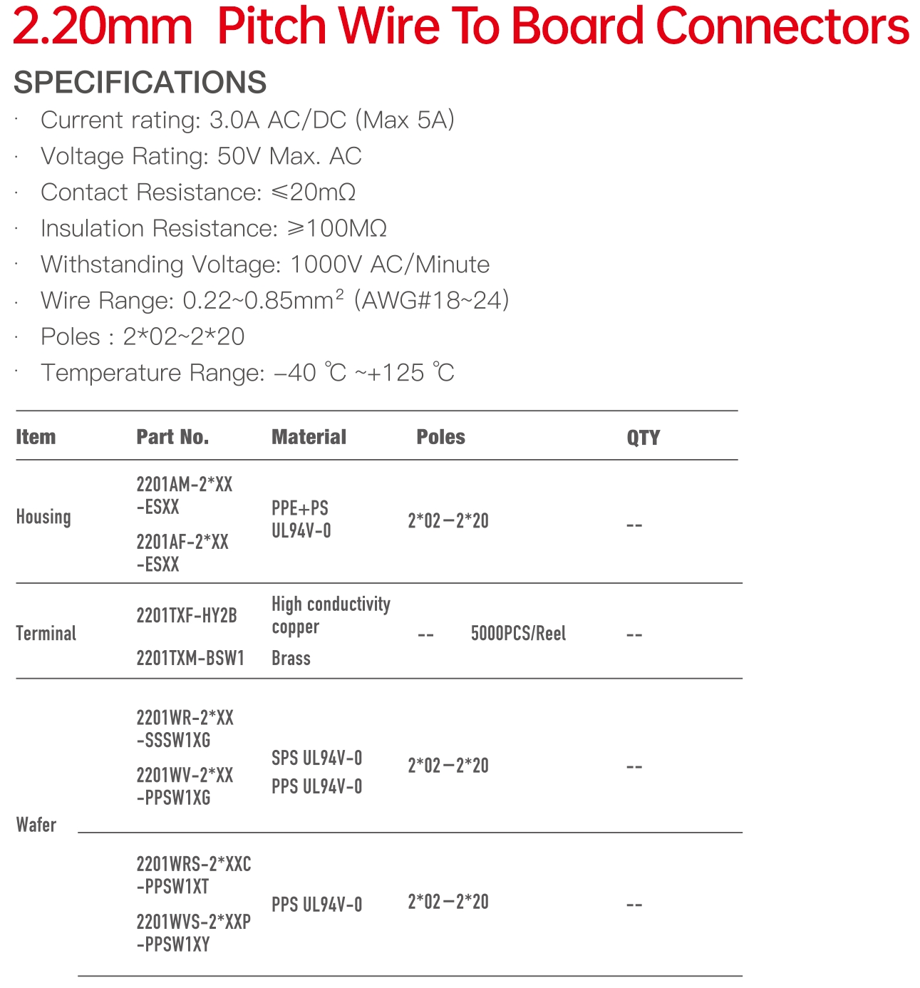2201 Series2.20mm Pitch (.087") 線對板連接器